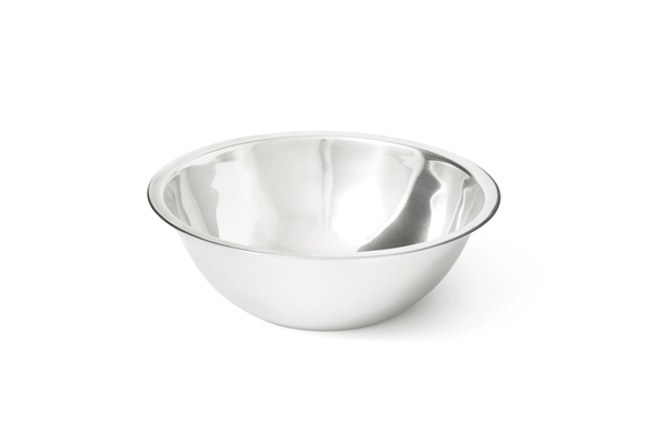 Stainless steel. Plenty of room for tossing salad or mixing dough.